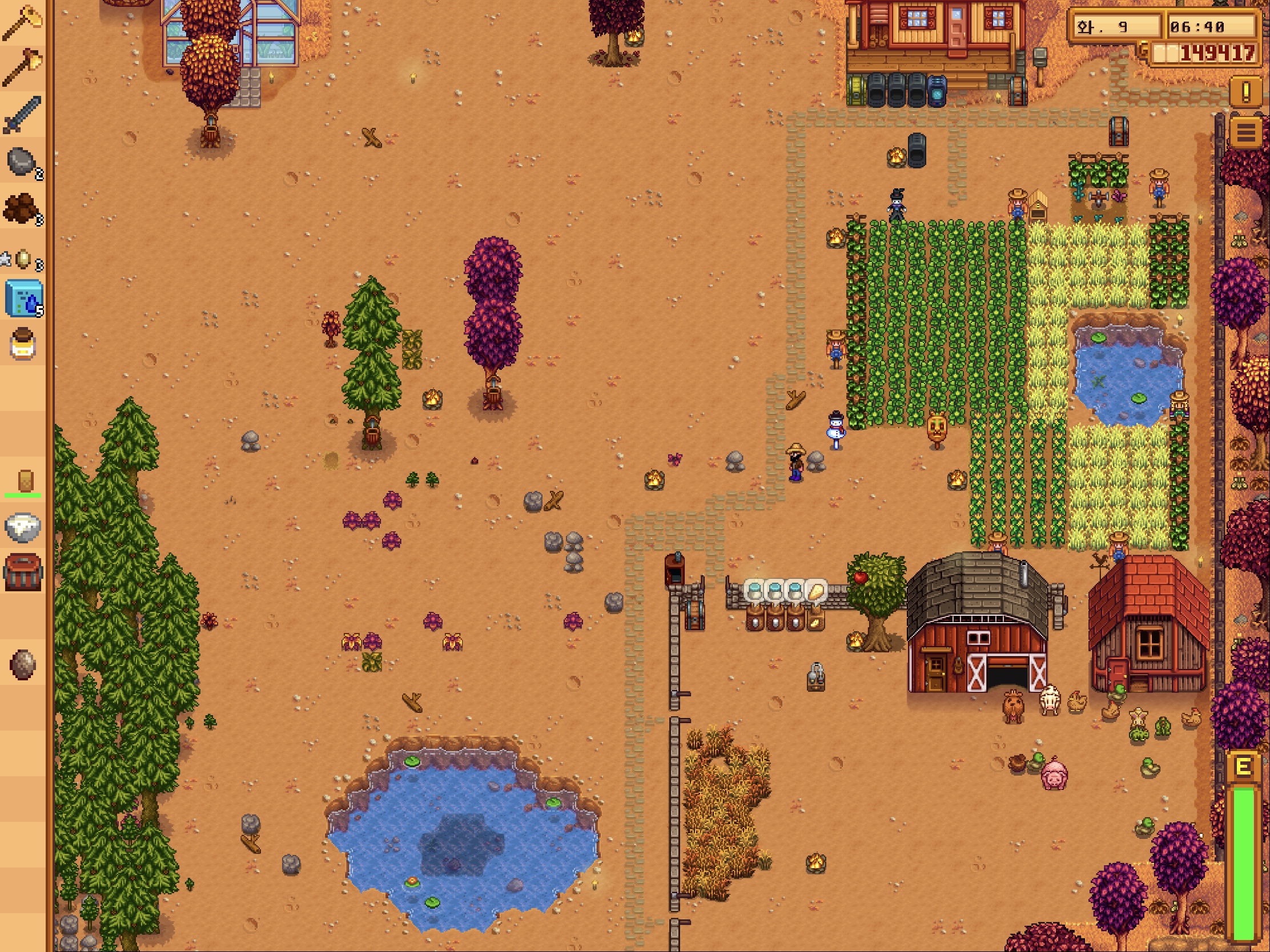 일단 스타듀 밸리라는 게임 자체가 오래된 컴퓨터로 가능할 정도로 가볍기 때문에, 고사양 3D 게임도 구동하는 모바일 환경에 이식하는 데는 아무 무리가 없는 수준이다. 렉 같은것은 찾아볼 수 조차 없다. 그리고 이동, 채집등이 전혀 불편하지 않았다. 이동하고 싶은 곳을 정하는 것이나, 상호작용 하고 싶은 사물을 고르는 것, 모두 터치 한 번에 해결되기 때문이다. 심지어 일반적인 상황에서는 상호작용하고픈 사물을 누를 경우, 상황에 맞는 도구로 자동으로 전환하는 편의성까지 보여준다. 2년차 플레이를 하는 동안, 일반적인 플레이 상황에서는 불편한 것이 하나도 없었다.